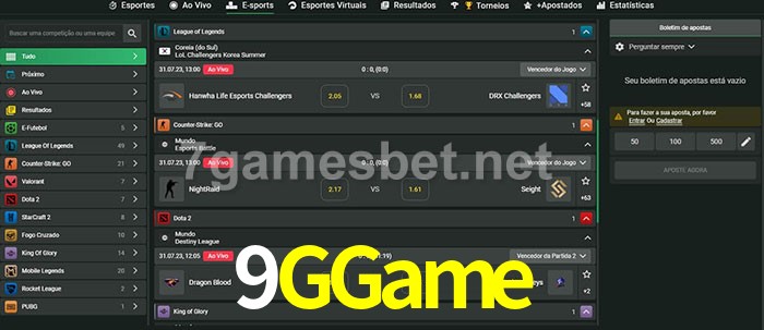 O 9GGame oferece uma grande seleção de opções de apostas em e-sports com probabilidades competitivas